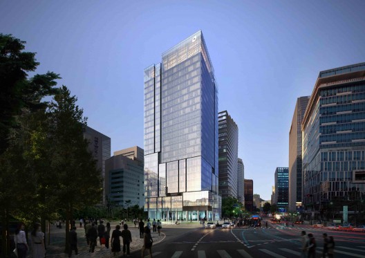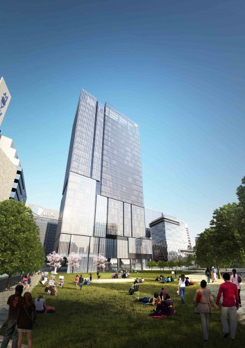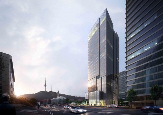 The Daishin Securities’ new headquarters proposal by H Architecture, with Haeahn Architecture, translates the security of a finance corporation into an image of solidity and steadfastness. Designed to be built in the CBD of Seoul, the 50,822m2 headquarters strives to be distinguished yet sensitive to the historic neighborhood of Downtown Seoul. More images and architects’ description after the break.
