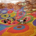 In a world of “dumbed-down,” down-right boring playgrounds, the colorful, architectural masterpieces of Toshiko Horiuchi MacAdam stand apart. The Japanese artist knits her amazing projects by hand – her most famous project, for example, inside the “Woods of Net” Pavilion at the Hakone Open Air Museum in Japan, took her about a year to complete.