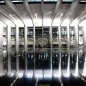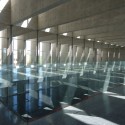 The floor of the atrium is of semi-transparent glass, which allows light into the basement. The basement is also a double height space, which functions as an auditorium and space for work with heavy machinery. At this level, classrooms and workshops are outside the concrete frames, in enclosed concrete boxes; this makes full course of the structure visible. The black polished concrete floor reflects the light and duplicates the space.