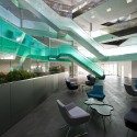 Throughout the interior the basic shape of the triangle creates a recognizable pattern that is applied consistently and in varying scales in order to extract valuable spatial qualities and functional subdivisions. In order to divide the building into subsections, a triangular interior atrium is inserted. The atrium is rotated 180° so that its tips meet the building’s outer edges. Given its direct contact to the facades, the atrium’s shape and orientation allow a large amount of daylight to reach the building centre.