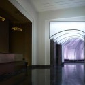 Delineated slopes of cascading sheer planes add to the design representing the surface of the present that has recorded an astronomical event over time. Even the design’s floorplan is laid out such that by shifting one’s position in the gallery, the perception of space changes as the voids separate, join, expand, and contract. All of the design effects add to the visitor’s experience of walking from “slice” to “slice” feeling like they are traveling through time in space.