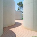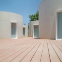 Monolithic concrete buildings bathed in natural light inside are forming a small square providing access to the pools. Three pools of different sizes and depths are distributed in the remaining areas of the ground. Around of them, recreational beach areas.