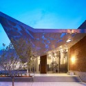 Equally important to the preservation of the existing structure was the addition of the new 900 square foot entry structure. The dramatic lobby is a glass-enclosed space set beneath a spectacular folded-panel roof that extends over the entry’s sculpture garden to form a kind of welcoming front porch. Located on the east side of the existing building, the lobby is a modern re-interpretation of the old loading dock, moving people, goods and art deep into the central core of the main exhibition space. This asymmetrical cross axis was created to juxtapose and complement the symmetry of the old historic building. The two buildings collapse together and fuse into one structure. Old and new become one. The space provokes a kind of indelible wonder while still affording traditional values to the people who visit.