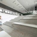 The two old school buildings are refurbished and retrofitted in order to contain new functions, while the new building created between them, will contain a new auditorium, a library, an information counter, a café and the canteen for the students plus a huge lounge stair for gathering of the users or a laid back moment. The new facilities are designed and constructed for flexible use enabling the teachers and students to combine everyday use with special events and performances.