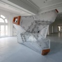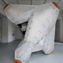 What is a building that can tumble freely without gravity or fixed orientations, hard on the outside but soft on the inside, and obstructs the continuity of interior spaces like an elephant in a room? This installation is a freestanding micro building / macro furniture that questions projection, inside/outside, rigidity/fluidity and size/scale.