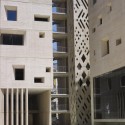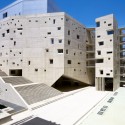 This new campus takes a contextual approach, integrating physically, culturally, and historically with Beirut’s urban tissue. Conceptually an urban block with sculpted voids, the building’s hollow spaces define six autonomous blocks and construct multiple viewpoints across Beirut, connecting students to their dynamic setting. The voids also generate a street-level meeting space, which flows fluidly to the top floor in the form of a massive staircase. It concludes at a landscaped terrace overlooking the city. Light is a vital element in oriental architecture and one that shapes its style and identity; the campus exposes alternate light qualities through Moucharabieh-inspired perforations and a polycarbonate volume. Such manipulation presents a striking contrast in filtered light and luminescence. A stylized random-opening treatment is a snapshot of the Lebanese War, lending a poetic glimpse into the reality of destruction and violence.