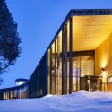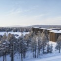 The load-bearing structure is mainly concrete cast in-situ to facilitate reasonably complex geometry. Thermal insulation exceeds the rigorous Finnish standards. To compensate for the remote location and large wood surfaces.the building has a water-mist sprinkler system.