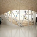 Amsterdam-based NL Architects have been asked to design a Bicycle Club for a large resort in Hainan, China. They have proposed a glass enclosed pavilion capped with a rooftop cycling arena that embodies curves reminiscent of the traditional and functional pagoda. Visitors can rent a bike and join the fun in the open-air velodrome or simply visit the club’s cafe and be entertained while sitting on the large staircases found in the middle of the oval structure.