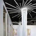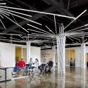 As part of an on-going collaboration with Skid Row Housing Trust (SRHT), a non-profit organization that provides permanent supportive housing for the homeless population of Los Angeles, LOHA was asked to design a 4,100 sf Tenant Improvement to house their management offices including training and event headquarters. Taking advantage of the heaviness of the existing ‘forest of columns’ present in the space, LOHA deployed a series of trees that concealed the existing structure while providing the framework for a custom lighting installation.