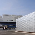 The following things were done in order to attain it. In order to secure the available light and natural ventilation from a window at the same time it prevents the invader from the outside, the building was covered by the steel plate panel which made the hole and which carried out special processing. Strength of structure was secured by attaching checkered unevenness to a panel. Moreover, the building is kept from becoming dirty from one-sheet one panel also inserting in a corner portion, and cutting rain. This design acts sensitively in union natural environment which changes every moment, such as light, air, empty, and begins to make a beautiful expression just like the ripples of a surface of a river.